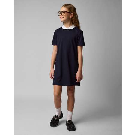 Школьное платье для девочки Futurino School тёмно-синего цвета с белым отложным воротничком.