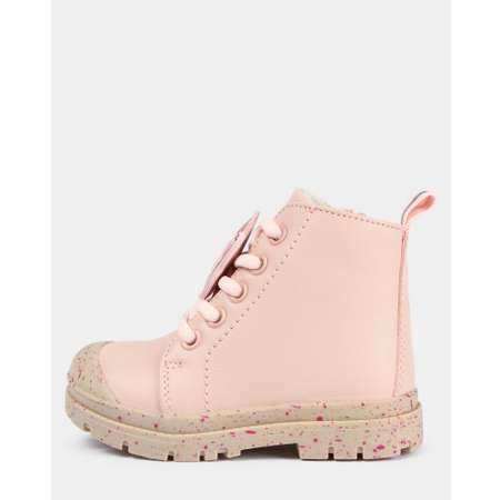Розовые ботинки для девочки Tombi с объёмными декоративными элементами.