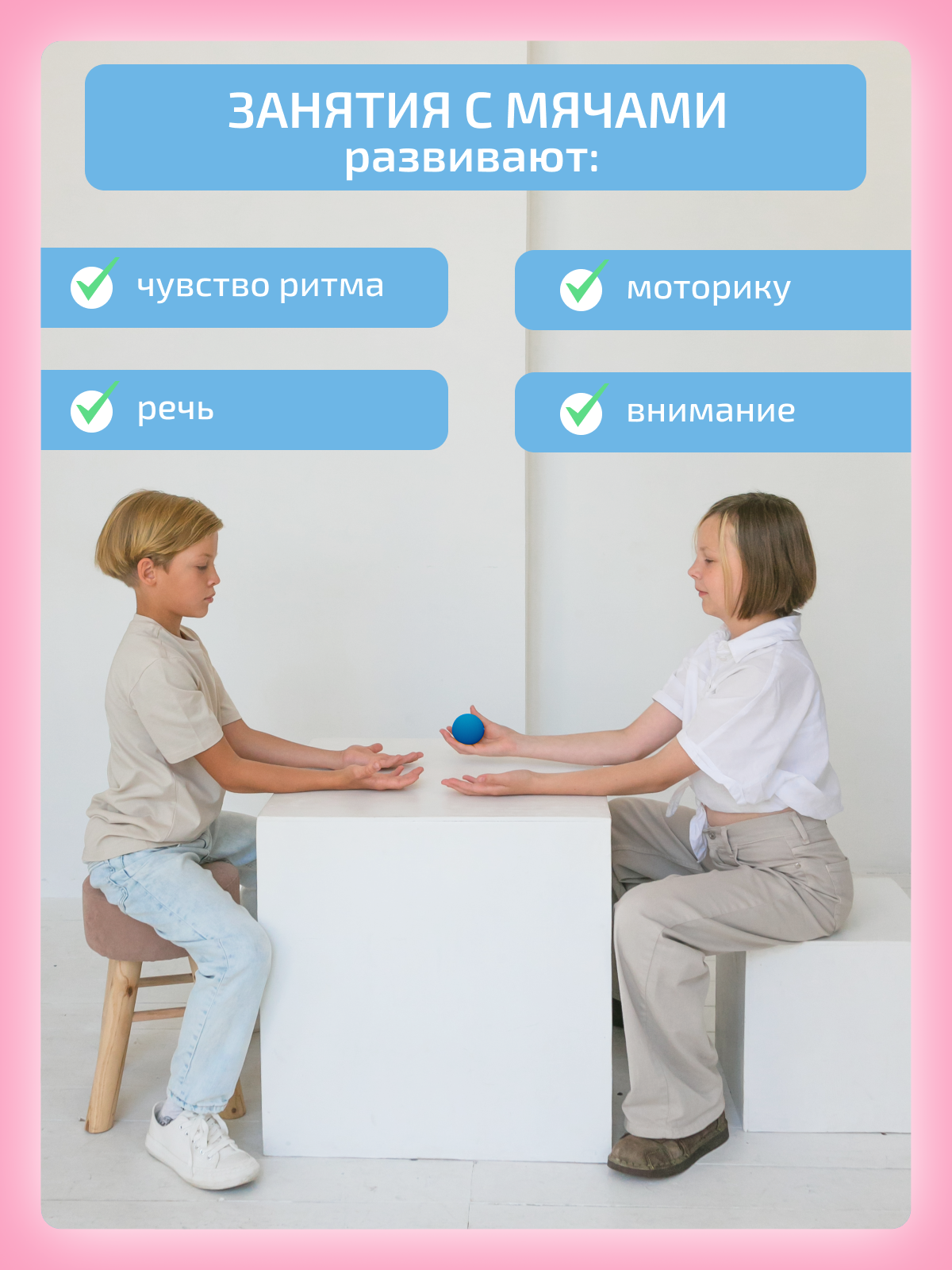 Кинезиологические мячи в наборе прыгучие, с особым звуком отскока. Каждый мяч из набора бархатистый и приятный на ощупь. Идеально помещается в детской и взрослой ладони.