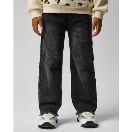 Широкие джинсы для девочки Futurino Fashion чёрного цвета с бахромой по низу.