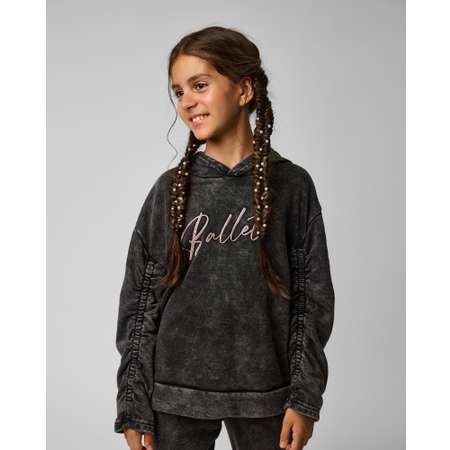 Тёмно-серое худи для девочки Futurino Fashion с надписью "Ballet" и сборками на рукавах.