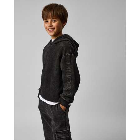 Худи для мальчика Futurino Fashion тёмно-серого цвета с надписью на рукаве.