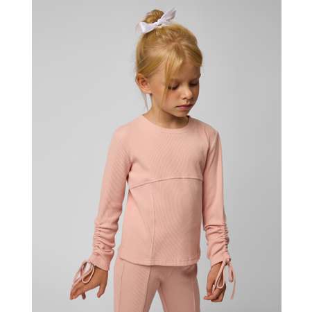 Розовый лонгслив для девочки Futurino Fashion со сборкой и завязками на рукавах.