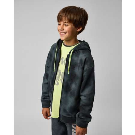 Тёмно-серая толстовка для мальчика Futurino Fashion с принтом "тай-дай" и светоотражающей надписью на спинке.