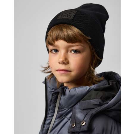 Шапка-бини для мальчика Futurino Fashion чёрного цвета с нашивкой.