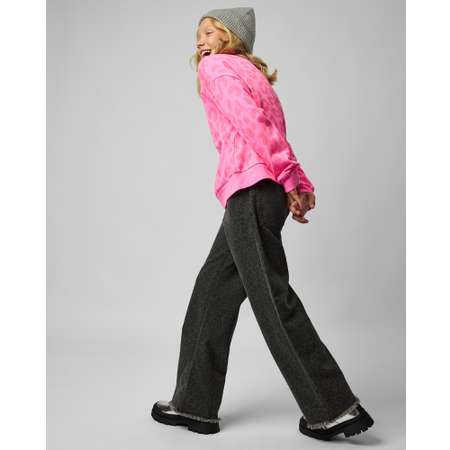 Широкие леопардовые джинсы для девочки Futurino Fashion в тёмно-сером цвете, с бахромой по низу.