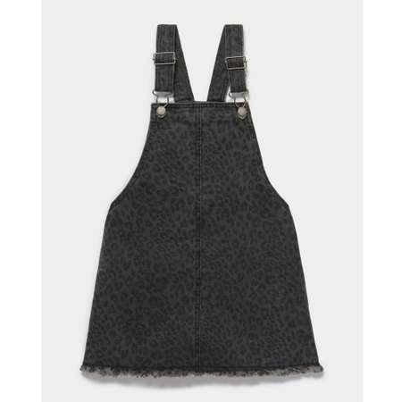 Джинсовый леопардовый сарафан для девочки Futurino Fashion в тёмно-сером цвете, с бахромой по низу.