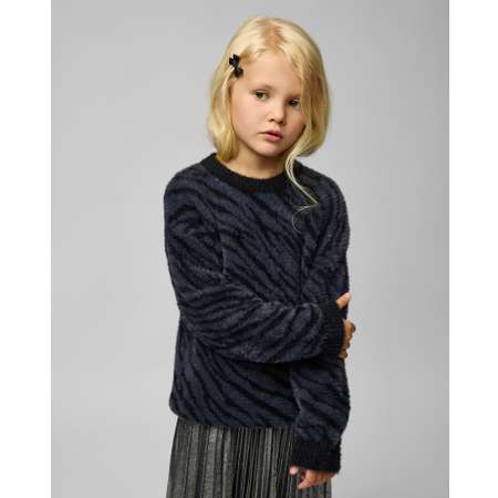 Пушистый джемпер для девочки Futurino Fashion в темно-сером цвете с анималистичным принтом.