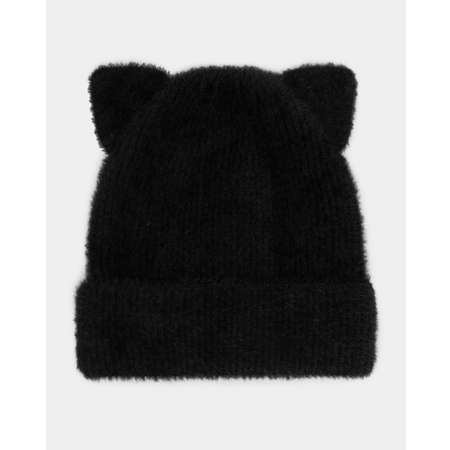 Пушистая шапка для девочки Futurino Fashion чёрного цвета с ушками.