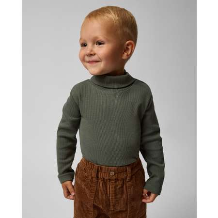 Однотонная тёмно-зелёная водолазка для мальчика Baby Go с нашивкой.