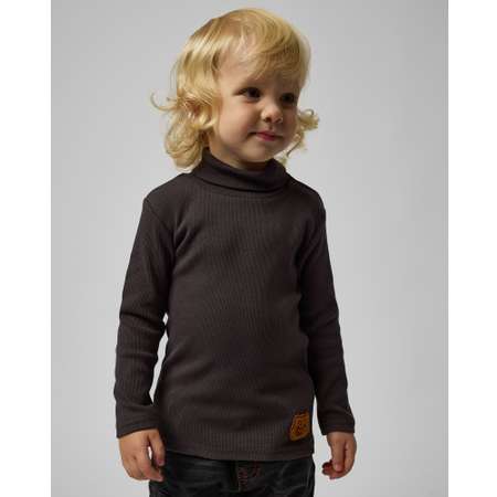 Тёмно-серая однотонная водолазка для мальчика Baby Go с объёмной нашивкой в виде медвежонка.