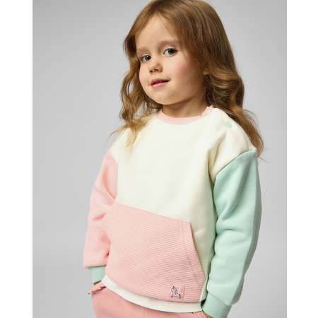 Свитшот для девочки Baby Go с цветными рукавами. Декорирован нашивкой.
