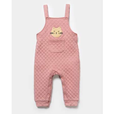 Стёганый розовый полукомбинезон для девочки Baby Go с объёмной вышивкой и нагрудным карманом.