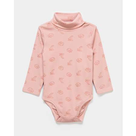 Боди-водолазка для девочки Baby Go розового цвета с блестящим принтом.