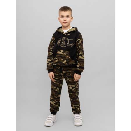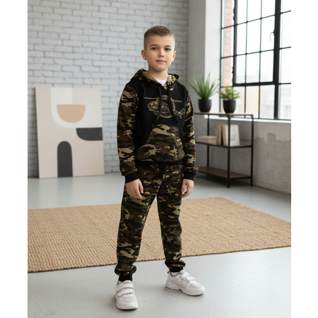 Костюм для мальчика. Камуфляж. Спортивный костюм для мальчика - удобный и качественный демисезонный наряд, состоит из брюк – джоггеров и кофты с капюшоном свободного кроя с принтом, цвет хаки. Для производства данной модели использовался мягкий, легкий и приятный к телу футер 2-х нитка с лайкрой без начеса. Носить костюм всесезонный можно при любой погоде – холодным летом, теплой осенью, весной или зимой, под верхний слой одежды. Комплект прекрасно подойдёт для занятий физкультурой в школе, путешествий и повседневной носки. Костюм для мальчиков удобен на любую фигуру. Примечательно, что оба предмета при желании можно сочетать с прочей одеждой и носить по отдельности. Благодаря манжетам и резинкам на рукавах и штанинах комплект подходит для разной длины рук и ног. Костюм для мальчика— это отличный подарок на день рождения и другие праздники, такой презент будет ежедневно напоминать о вашей любви и заботе. Костюм детский прост в уходе - мы рекомендуем предварительную стирку при 30 градусах. Т.к. изделие включает в себя контрастные цвета, рекомендуем использовать порошки и гели для цветных вещей. Вы можете посмотреть весь ассортимент одежды нажав на логотип бренда Утенок. Собственное производство в РФ.