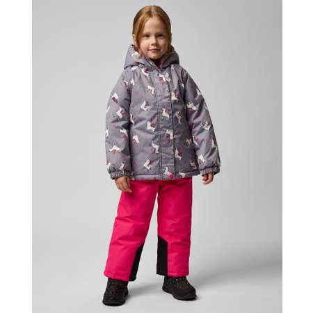 Комплект для девочки Futurino из дух предметов: серой куртки с единорогами и розового полукомбинезона.