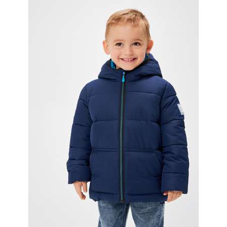 Утеплённая куртка для мальчика из ткани с водоотталкивающей пропиткой, с капюшоном. Подкладка выполнена из стандартной подкладочной ткани. Застёжка на молнию с внутренней планкой. Спереди два накладных кармана. На рукаве декоративный пэтч. Низ рукава и капюшон окантован эластичной лентой. Низ изделия регулируется внутренней утяжкой. Температурный режим от +10 до -10 С.
