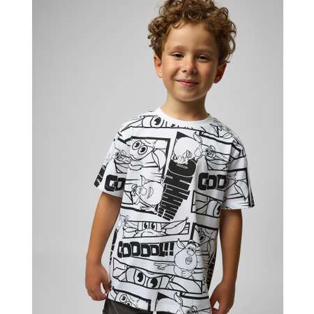 Белая футболка для мальчика Буба, декорированная однотонным принтом с героем мультфильма.