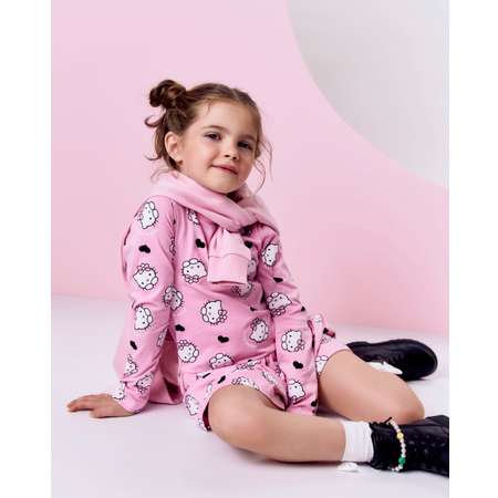 Розовое платье для девочки Hello Kitty с цветным принтом.