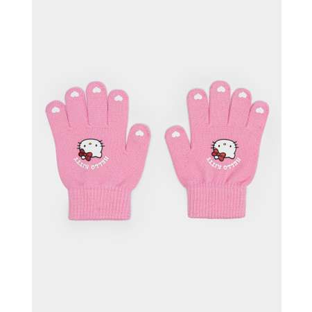 Перчатки для девочки Hello Kitty розового цвета, декорированы блестящим цветным принтом.