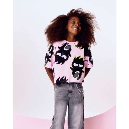 Укороченная розовая футболка для девочки HELLO KITTY AND FRIENDS с принтом "Бадц-Мару".