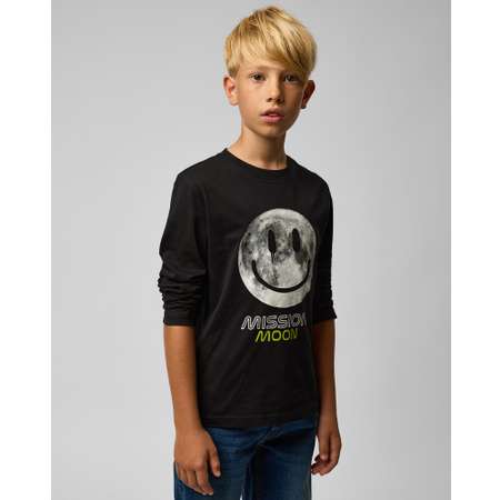 Чёрный лонгслив для мальчика Futurino с цветным принтом "mission moon".