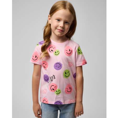 Розовая футболка для девочки Futurino с цветным притом "эмодзи".