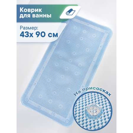 Коврик для ванной детский VILINA противоскользящий с присосками 43х90 см. небесно-голубой