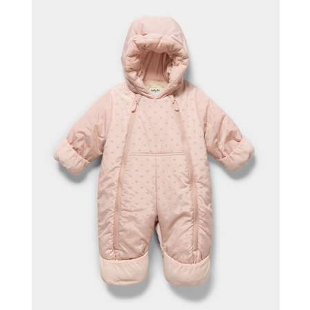 Зимний комбинезон для девочки Baby Go розового цвета с сердечками. Декорирован ушками на капюшоне.