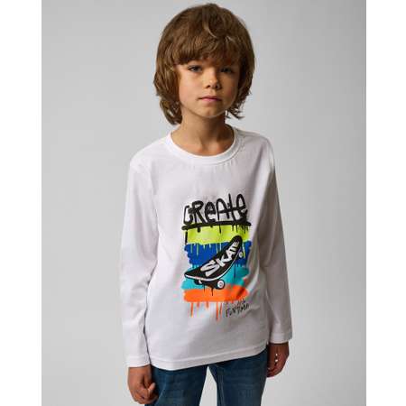 Белый лонгслив для мальчика Futurino, декорированный ярким принтом в стиле граффити.