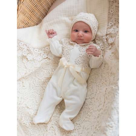 Нежный комплект для новорожденных с элегантным кружевом идеально подойдёт на выписку из роддома и для первой фотосессии малыша. Нательный комплект из 100% органического хлопка состоит из комбинезона и чепчика. Данный комплект особенно понравится будущей маме, которая ценит красоту и практичность, потому что комплект можно использовать не только на выписку, но и дома в дальнейшем. Праздничная и в то же время комфортная модель идеальна для выписки из роддома новорожденного малыша.Состав:100% органический хлопок. Цвет:Натуральный.
