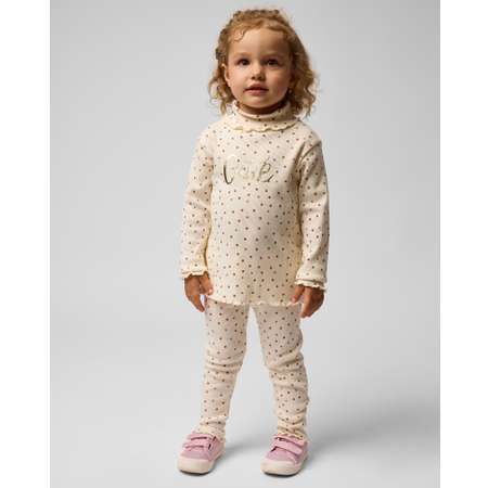 Водолазка для девочки Baby Gо с принтом в горошек и золотистой надписью "Cutie".