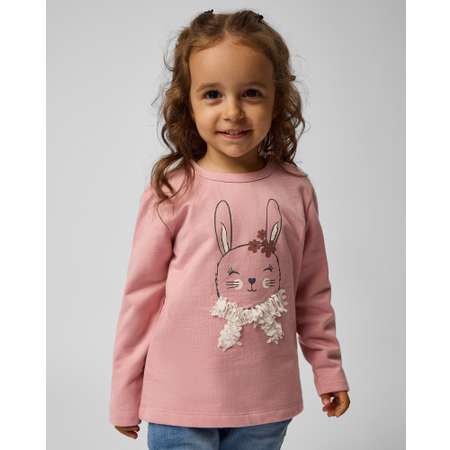 Розовый свитшот для девочки Baby Gо с принтом, украшенным блёстками и объёмными элементами.