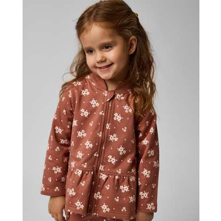 Коричневая толстовка для девочки Baby Gо с баской и цветочным принтом.