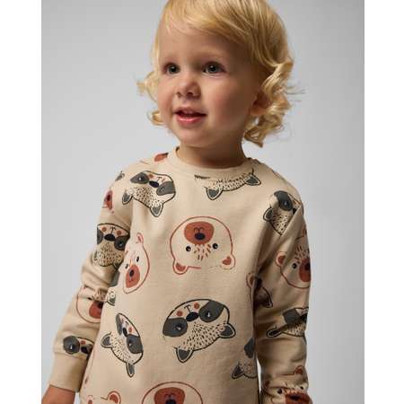 Бежевый свитшот для мальчика Baby Gо, декорированный цветным принтом.