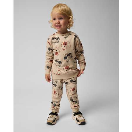 Бежевые брюки для мальчика Baby Gо, декорированные цветным принтом.