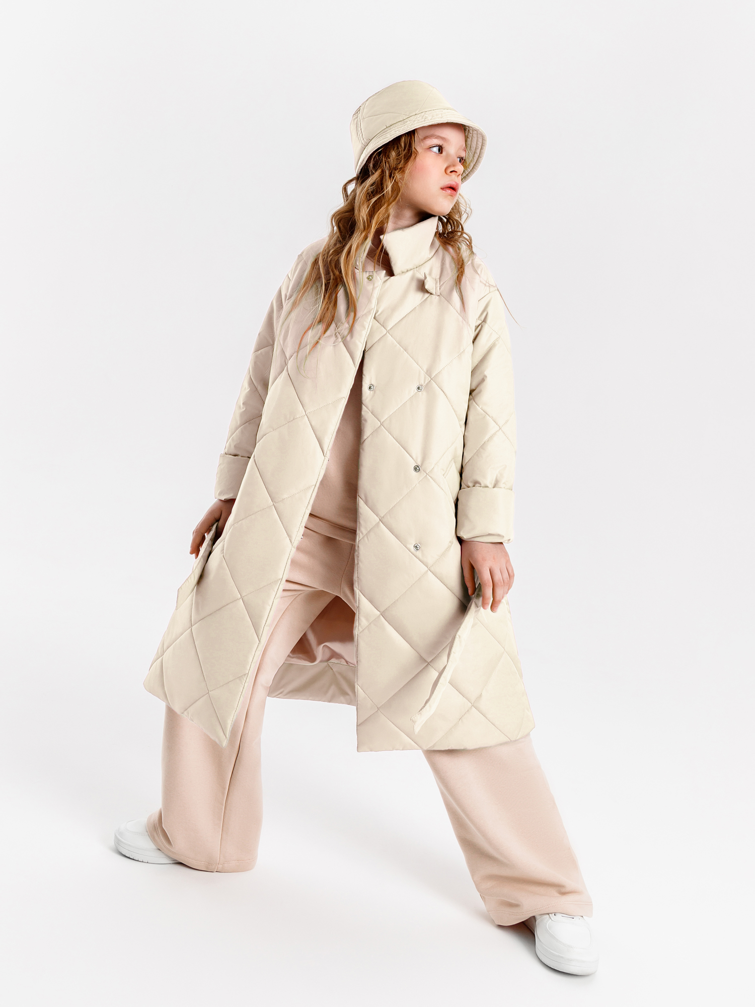 Трендовое стеганое пальто для девочки Amarobaby из лёгкой плащевой ткани c утеплителем станет незаменимой вещью в гардеробе.