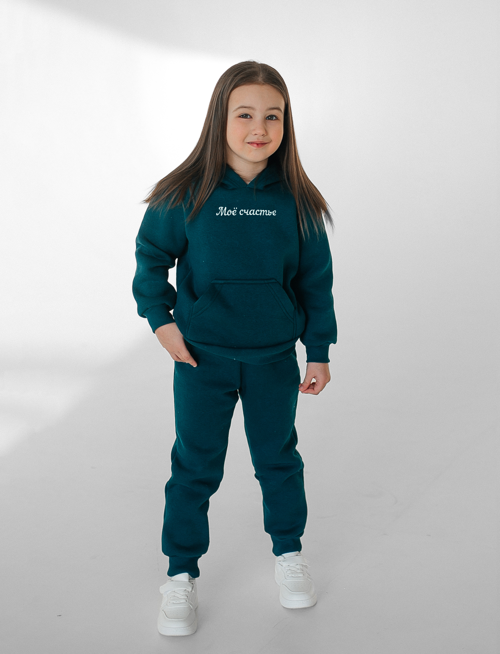 Костюм спортивный футер 3-х нитка с начесом, ткань в данном костюме плотная идеально подходит на осенне-зимний сезон! В комплект входит толстовка и брюки джоггеры свободного кроя на манжете. Полотно состоит из хлопка с добавлением полиэстера, благодаря этому костюм для девочки очень удобный и эластичный. Свитшот имеет принт, который выполнен качественными красками. Благодаря конструкции костюм, не сковывает движения, ваш ребенок будет в максимальном комфорте. Сделано в России.