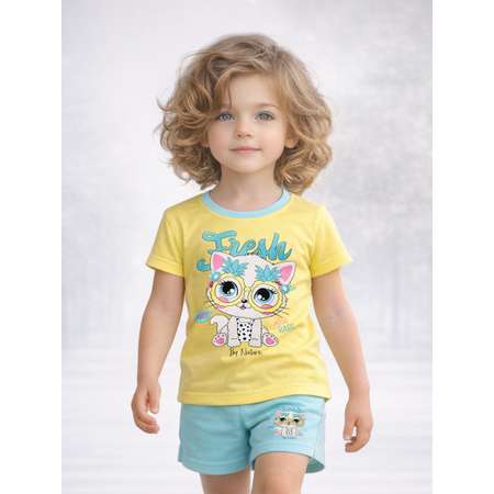 Костюм - футболка с шортами, выполнен из экологичной хлопковой ткани-кулирное полотно.Футболка прямого кроя. Вырез горловины округлый, выполнен из эластичной ткани рибана, рукав втачной, короткий. Полочка декорирована тематическим принтом .Трикотажный комплект футболка и шорты отлично подойдет для детей на лето как повседневная одежда. Футболки с яркими, красивыми и разнообразными принтами. Очень удобные шорты с мягкой резинкой. Костюм с шортами для девочки легко стирается, не теряет цвет и форму, не скатывается. Детские костюмы для девочки из хлопка гипоаллергенны и хорошо пропускают воздух, поэтому в жаркий летний день в таком костюме будет очень комфортно и не жарко.