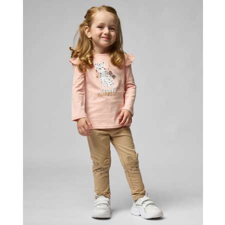 Бежевые легинсы для девочки Baby Go, декорированные принтом с блёстками и объёмными элементами-ушками.