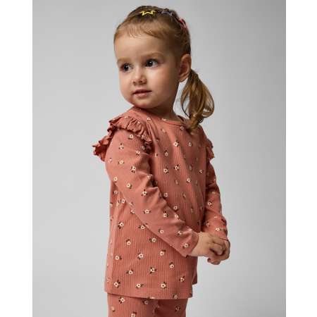 Розовый лонгслив для девочки Baby Go с оборками и цветочным принтом.