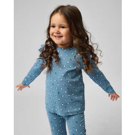 Голубой лонгслив для девочки Baby Go с оборками и цветочным принтом.