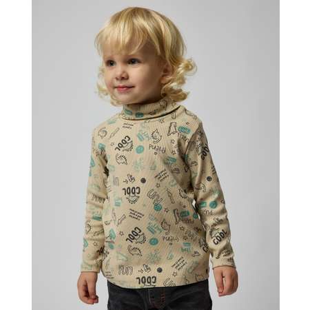 Бежевая водолазка для мальчика Baby Gо, декорированная принтом с динозавриками.