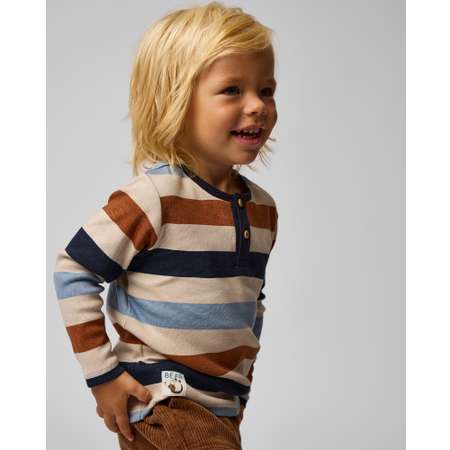 Лонгслив для мальчика Baby Go в цветную полоску. Декорирован нашивкой.