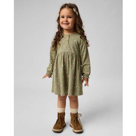 Зелёное платье для девочки Baby Go с цветочным принтом.