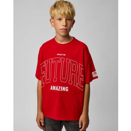 Красная футболка для мальчика Futurino с надписями.