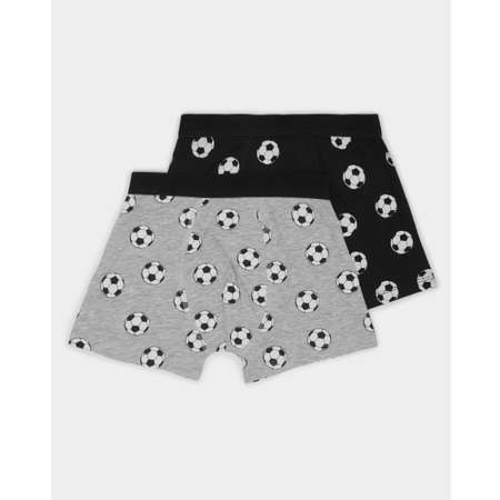 В комплекте Day and Night две модели трусов-боксеров с принтом "футбольные мячи" для мальчика - чёрные и серые меланжевые.