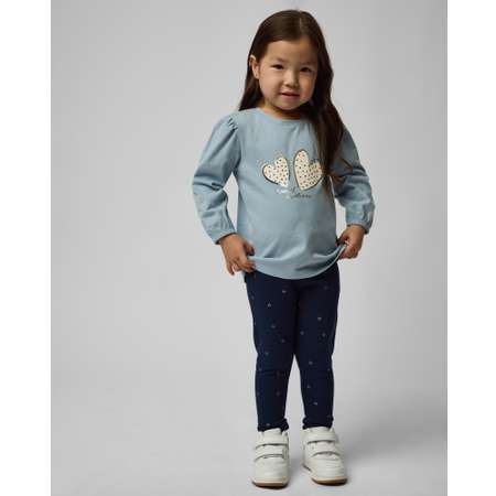 Тёмно-синие легинсы для девочки Baby Gо, декорированные серебристым принтом со звёздочками.