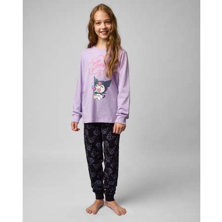 Пижамный комплект для девочки HELLO KITTY AND FRIENDS из тёмно-синих брюк и фиолетового лонгслива с принтом "Kuromi".
