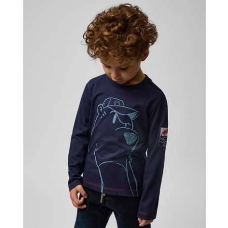Тёмно-синий лонгслив для мальчика Futurino, декорированный нашивкой и однотонным принтом с мишкой.